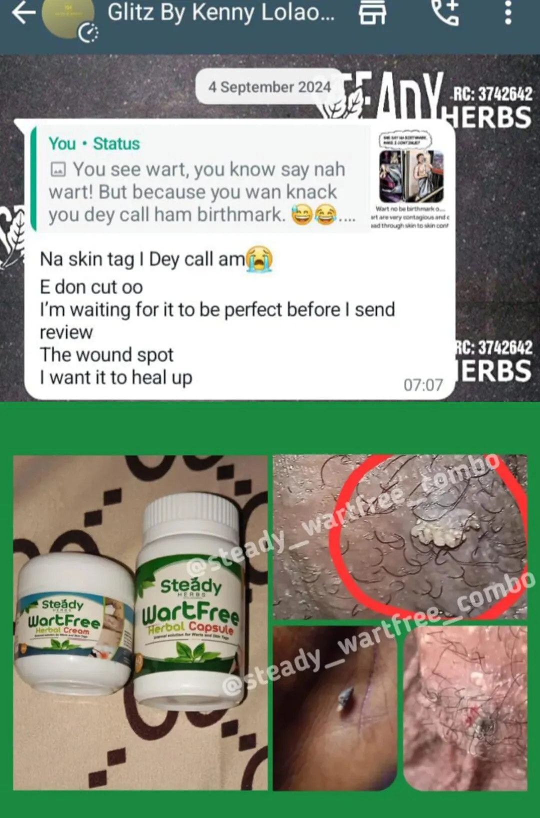 Steady WartFree Combo proven to be the best solution to eradicate genital warts, skin tag, keloid and many more skin problems. With carefully selected medicinal plants with proven antiviral, antibacterial, and skin-repairing properties, offering results you can see and feel.